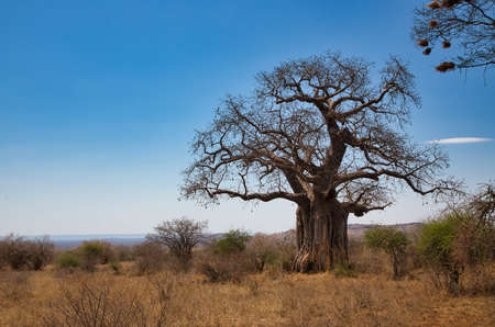 African baobab, Adansonia digitata, in the landscape of Tsavo National Park in Kenya.