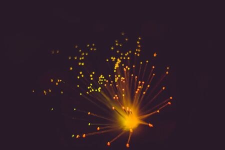 Glowing particles and lines with black background, 3d rendering. Computer digital drawing.
