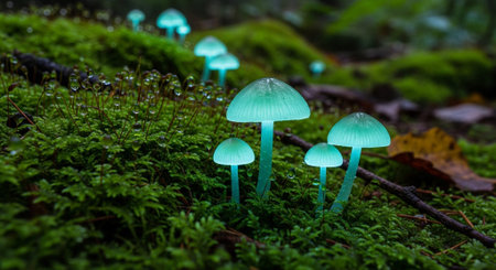 Bright glowing bacteria are prominently visible under ultraviolet light, creating a captivating display in a dark setting, showing natural beauty.