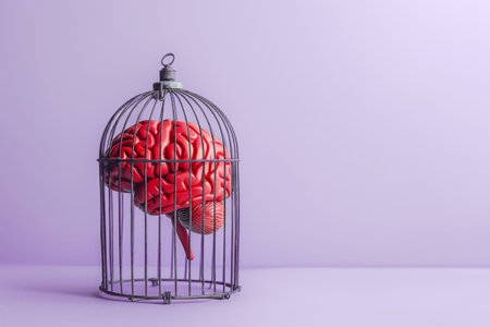 A heart-shaped light trapped inside an iron cage, symbolizing emotional struggles, longing, and unfulfilled love.