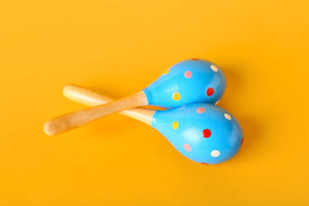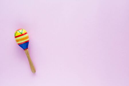 Maracas on pink background for baby toy musical instrument, hobbies, learning and education concept