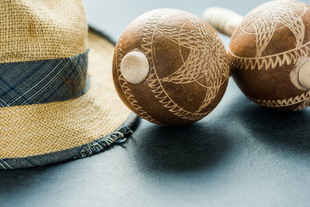 panama hat and musical instrumet.Vacation in Cuba concept.