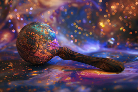 close-up of a mexican maraca decorated with bright colors, created with generative ai