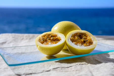 tropical fruit passionflower on a plate