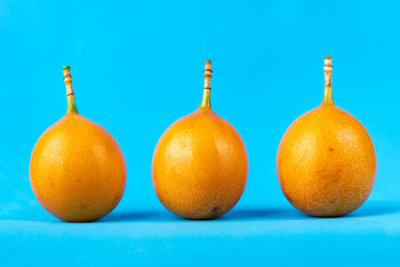 Picture of ripe fresh granadilla on blue background