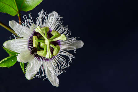 Passion fruit flower on black background, healthy fruit in summer