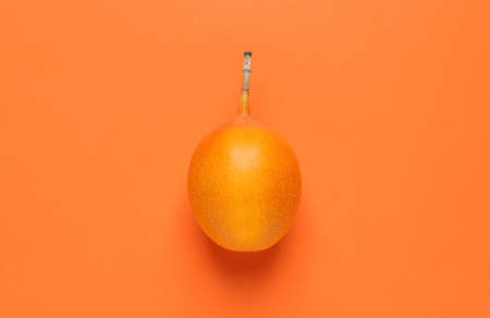 Delicious ripe granadilla on orange background, top view
