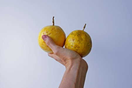 Passion fruits on hand in a bright background