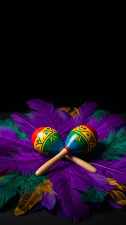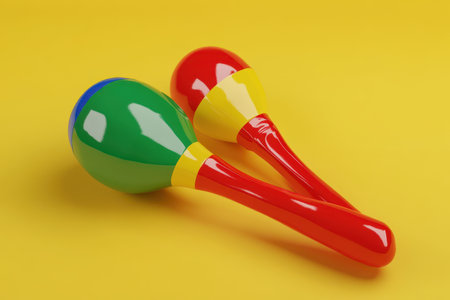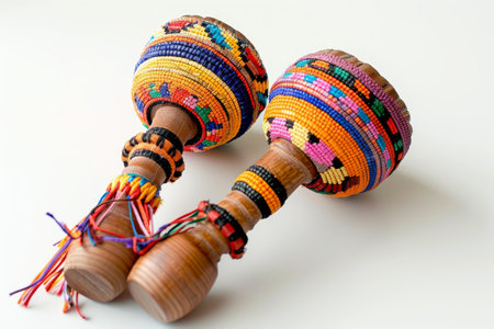 side view of a set of maracas on a colorful fabric, created with generative ai