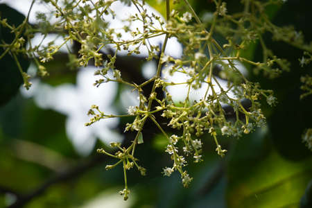 The flower of teak tree with a natural background. Indonesian called it jati and use the leaves as food wrappers and the tree as furniture