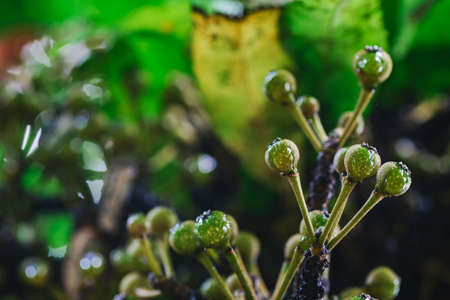 Macro closeup shot a cluster of wild fruit on the tree in the rainforest. selective focus shot