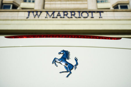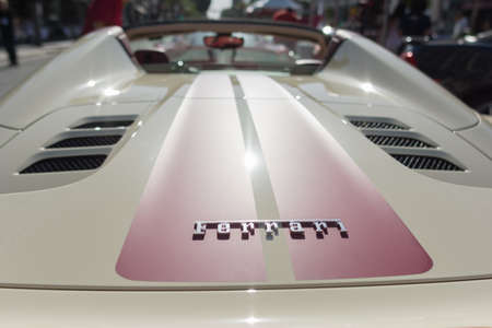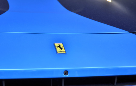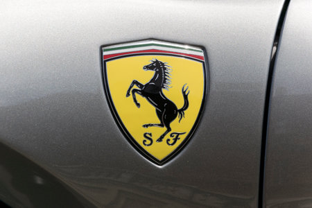 Pasadena, USA - April 24, 2016: Ferrari logo on display at the 9th Annual Concorso Ferrari event.