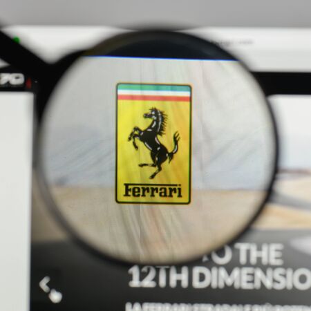 Milan, Italy - August 10, 2017: Ferrari logo on the website homepage.