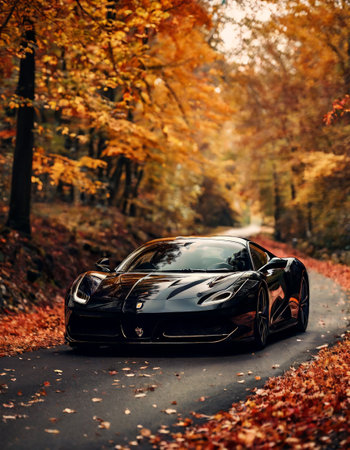 Black Sports Car Driving on Autumn Road