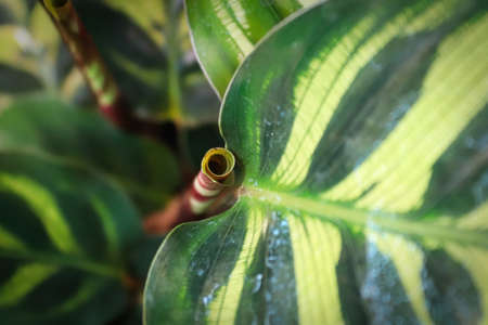 Close up view of plant Calathea Zebrina strimblad family of shrub plants. Sweden.