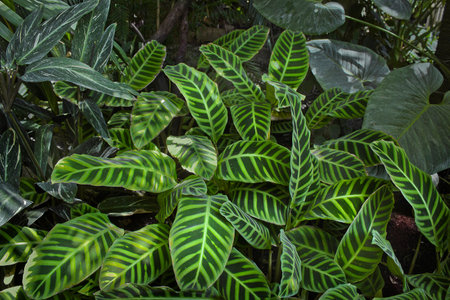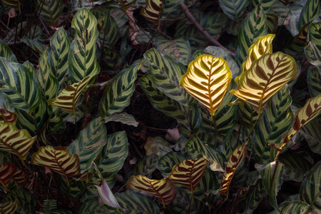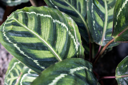 Close up of the beautiful leaves of Calathea lancifolia plant