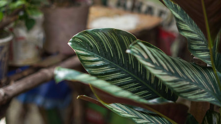 Calathea Makoyana E. Morren, Beautiful leaves, air purifier plant, natural background.