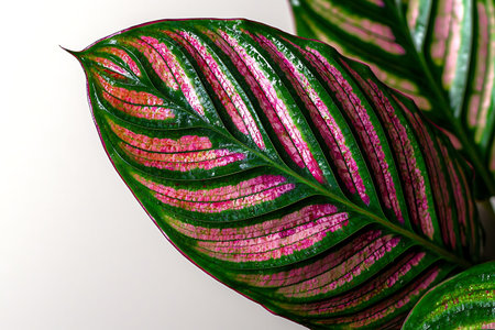 This stunning close-up features a vibrant leaf with intricate pink and green patterns, showcasing nature's beauty and elegance perfect for decorative use.