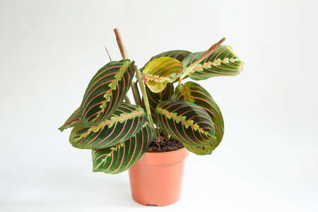 Stromanthe flower with red, green and yellow leaves, white and green background