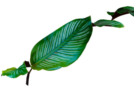 Tropical exotic foliage Calathea ornata (Pin-stripe calathea) leaves isolated on white background with clipping path