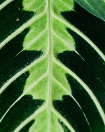 A vertical shot of a Maranta leuconeura leaf under the sunlight