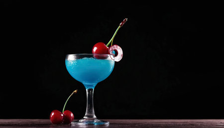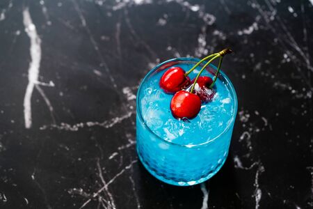 Blue Lagoon Cocktail with Cherries and Crushed Ice. Ready to Drink.