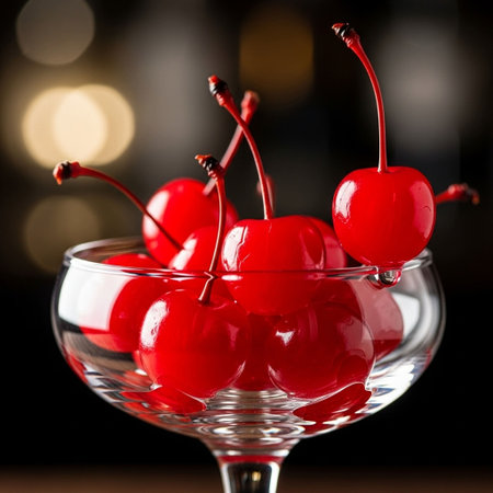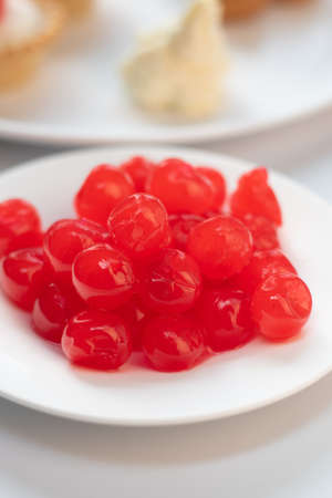 Sweet Red Maraschino Cherries in Sticky Syrup