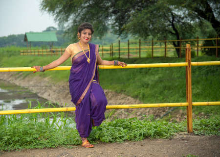 Indian Traditional Beautiful young girl in saree posing outdoors