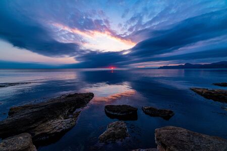 Beautiful sunset on the sea during a storm