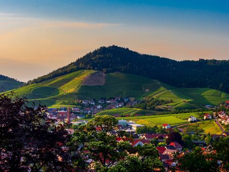 Little cozy german village between the green hills, vineyards in Black Forest, Germany