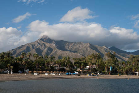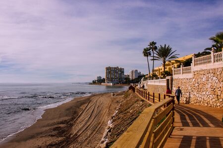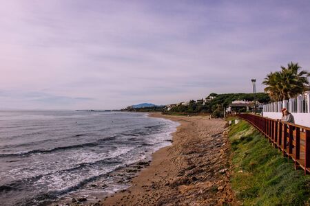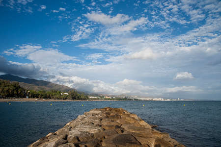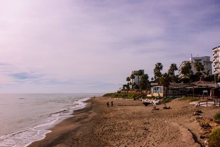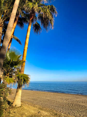 Beach View of the evening beach of Marbella. Costa del Sol, Andalusia, Spain. Picture taken? 3 March 2019.