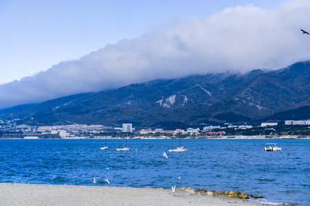 seascape landscape shot in benalmadena with the cityscape distant