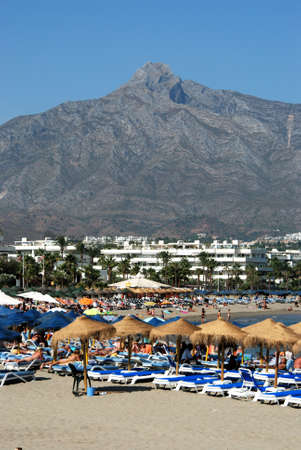 Beach. A sunny day on the beach of Marbella. Malaga province, Andalusia, Spain. Picture taken ? ? 3 May 2018.