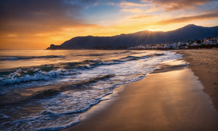 a sunset image along one of the many beaches found along the coast in Marbella, Spain