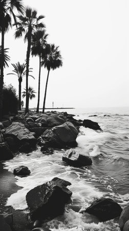 Sea coast with palm trees and rocks