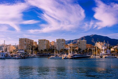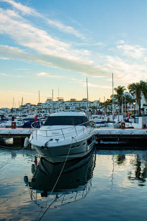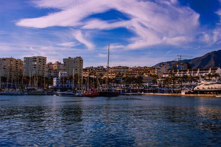 Port. Evening at the port. Estepona, Malaga, Andalusia, Spain. Picture taken? 10 February 2019.