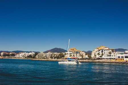 Puerto Banus near Marbella sand beach view, Andalusia region of Spain