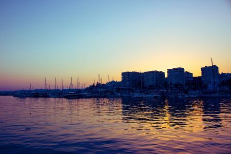 Vinaros, Spain, September 03, 2017: Vinaros view from port in sunset. Vinaroz is an mediterranean sea town