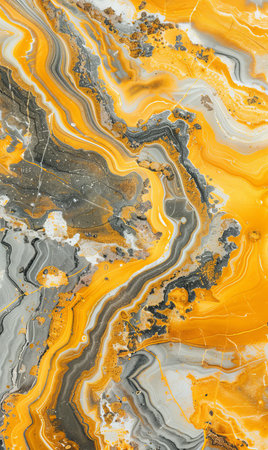 Abstract background of yellow and grey marble texture. Liquid marble pattern