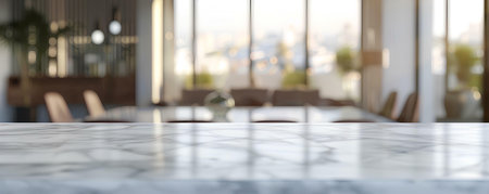AI Generated. White stone marble table top and blurred abstract background from interior building banner background - can used for display or montage your products