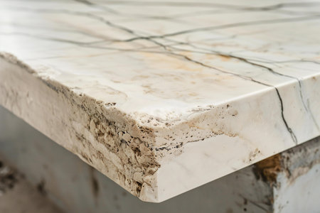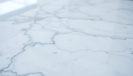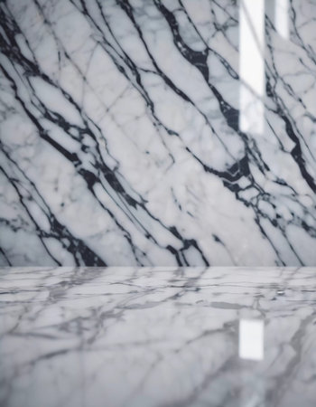 Close-up of a stunning marble countertop showing intricate designs and smooth surfaces in a bright indoor space.