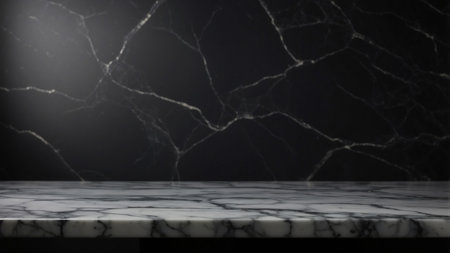 Marble kitchen empty luxury countertop in black, soft focus. Scene showcase template for promotional items, banner. Modern kitchen design