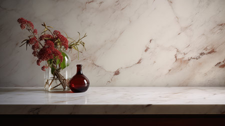 Beige Marble Kitchen Countertop for Product Presentation and Beauty Advertising