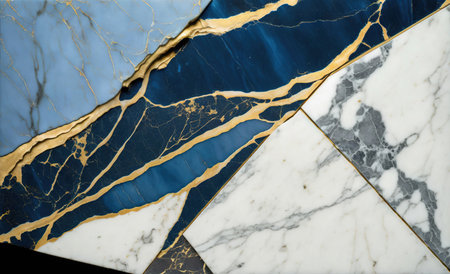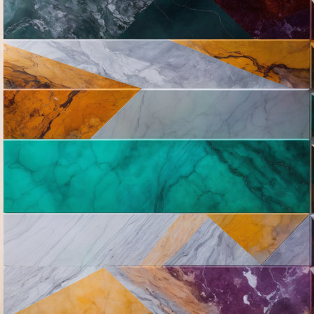 This image features a striking arrangement of marble tiles showcasing diverse patterns and textures, perfect for inspiration in design and renovation projects.