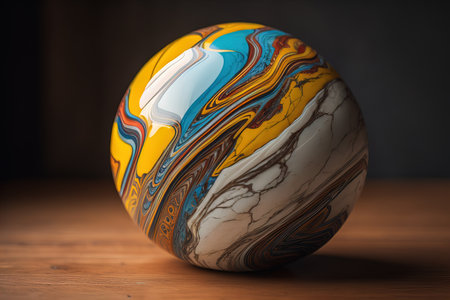 A captivating abstract marble sphere featuring swirling patterns in shades of teal, cream, and brown. This artistic design offers a modern aesthetic for various applications.