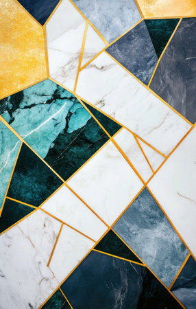 Abstract blue and gold lines, white marble textures with turquoise, black, gray, green, and yellow, marble patterns with gold accents, a golden mountain landscape, marble textures with golden line borders, marble patterns with black ink outlines, marble textures with emerald green highlights, marble patterns with teal and dark gray colors, marble patterns with a white background, marble textures with dark purple, pink, light brown, and orange colors. --ar 19:30 --v 6.1 Job ID: 4673ca80-9394-4826-90fc-d645c412a94f
