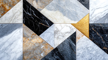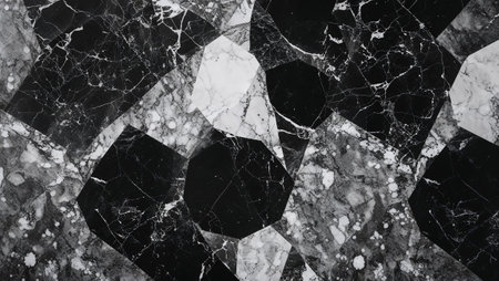 Black and white marble slabs forming an elegant geometric pattern, ideal for upscale interiors. Ai generated image