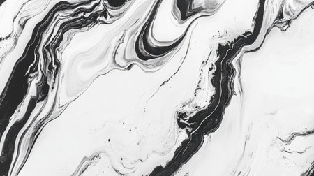 Abstract liquid marble texture, bold black and white swirls creating striking contrasts, modern and artistic