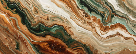Liquid acrylic paint in earthy tones of brown, green, and beige, creating a natural, flowing texture. The colors blend and separate, forming organic patterns and rich contrasts.