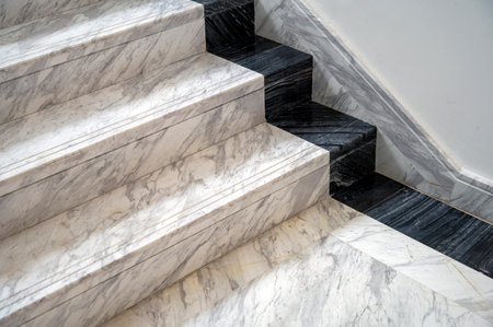 Explore a stunning modern interior showcasing a black marble staircase. The spacious design features ample natural light and stylish decor. Ideal for luxury living.